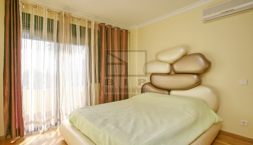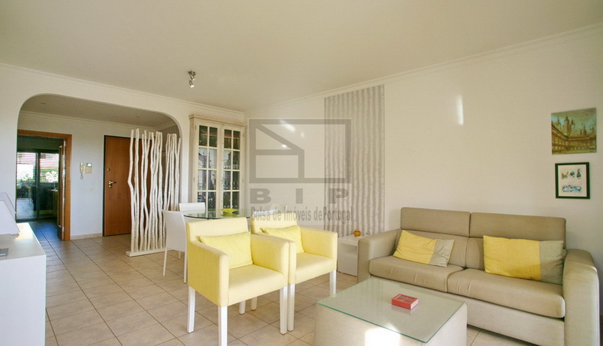 Este espaçoso apartamento tem diversas características que o distinguem tais como, estar situado num dos primeiros edifícios dos Terraços do pinhal e como tal não tem a vista obstruída, sendo mesmo possível ter uma vista longínqua do mar , beneficia de uma excelente exposição solar o que proporciona um ambiente com muita luminosidade no interior, tem uma varanda ampla equipada com uma barbecue com vista sobre o grande jardim e piscina e na cave tem dois lugares de estacionamento e uma arrecadação privada.