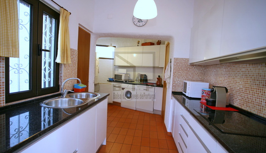 No res do chao tem uma ampla sala de estar, sala de jantar e cozinha, um quarto e uma casa de banho. O acesso ao jardim e piscina é feito atraves do terraço, e que dá acesso tambem á barbecue. No primeiro piso tem 2 quartos em suite.Todas as casas de banho e cozinha foram remodeladas recentemente, e a casa tem estores eletricos , vidros duplos.